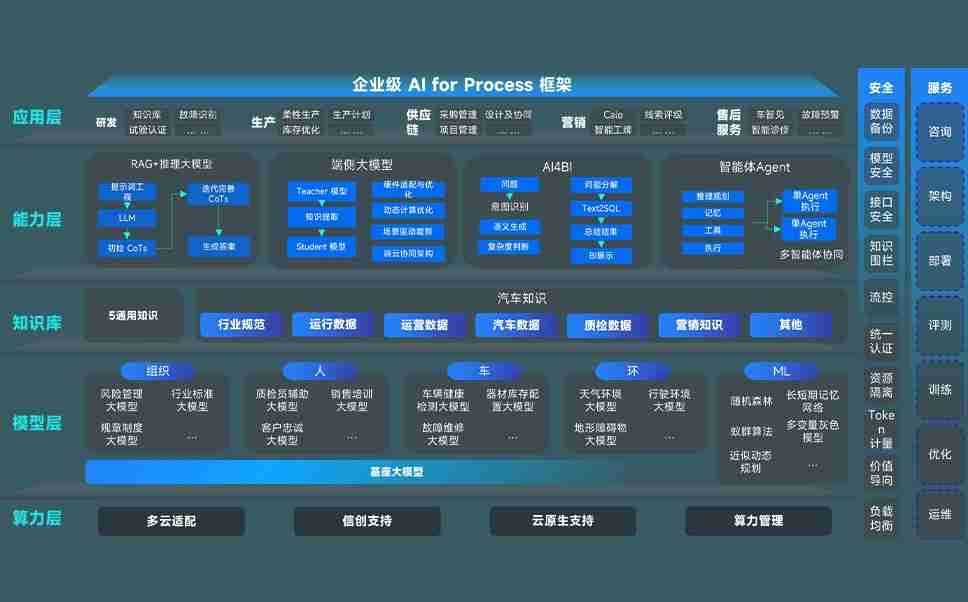尊龙问学智车解决方案是一套基于AI技术的汽车行业智能化系统,,覆盖从底层算力到顶层AI应用的全栈方案。。方案由算力层、、模型层和应用层组成:算力层,,方案支持多种一体机配置,,具备云端灵活部署、、多云适配以及动态优化计算资源的能力;模型层,,尊龙问学平台版提供了企业级AI应用一站式构建与管理平台,,,支持基于后训练强化技术的汽车企业专属模型的训练、、、、评测和运营;应用层,,尊龙问学DeepSeek版提供包括超级员工、、、、智能招采、、、智能营销、、、智能客服、、、、AI for BI等一系列解决方案,,,可助力汽车行业实现数字化转型,,,,让管理更智能、、、、响应更敏捷。。。